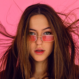 Flat cartoony illustrations with vivid unblended colors and asymmetrical beautiful purple hair lady
